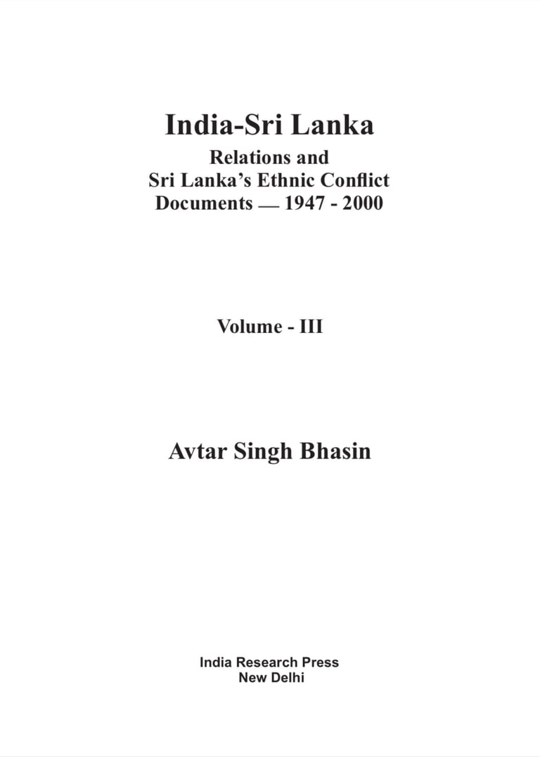 India-Srilanka Relation Volume 3