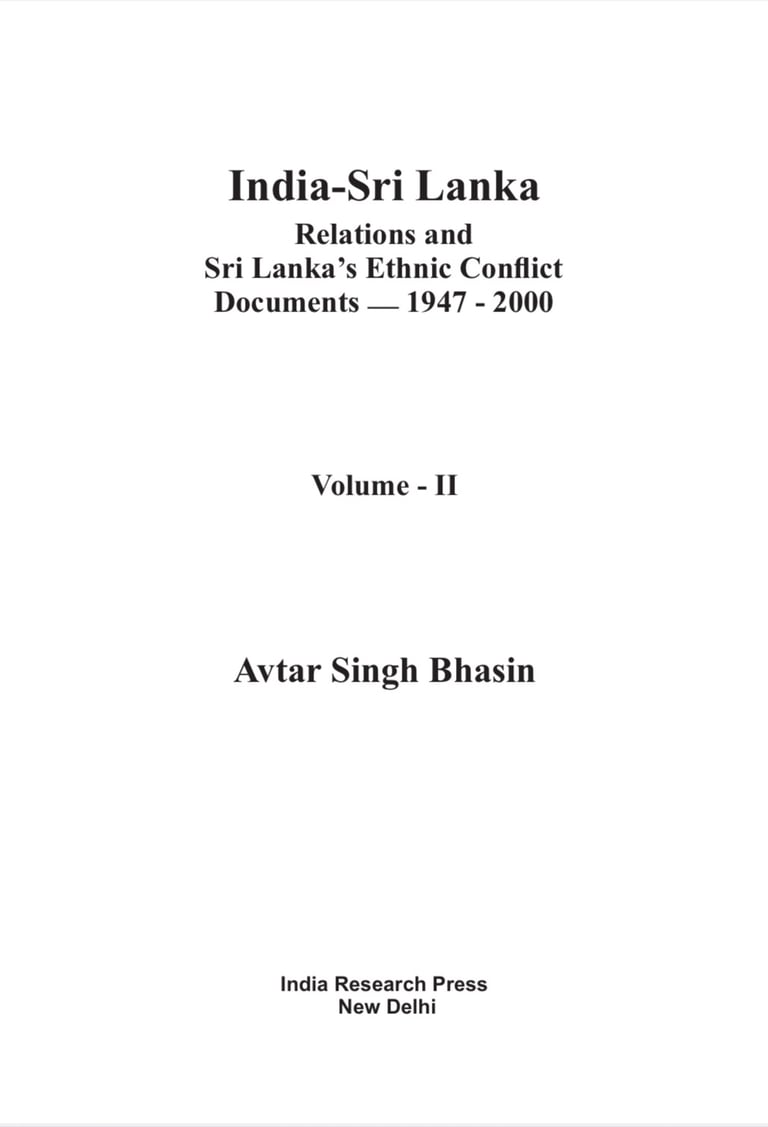 India-Srilanka Relation Volume 2